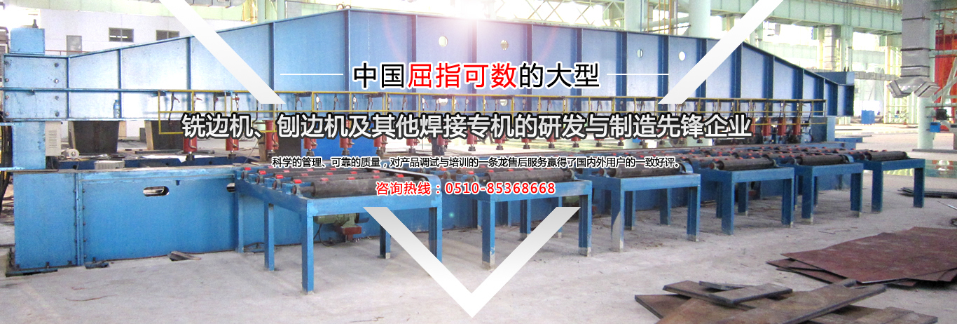 公司是中國金屬銑削切割自動焊接工藝的搖籃,公司是國內(nèi)制造有壓梁、無壓梁銑邊機、刨邊機及其他焊接專機的專業(yè)廠家。取得國家專利局頒發(fā)的最新銑、刨邊機產(chǎn)品專利證書。通過了ISO9001.2000國際質(zhì)量體系認證,并獲得了“全國用戶滿意產(chǎn)品”、“江蘇省質(zhì)量信得過AAA級品牌企業(yè)”的榮譽稱號。銷售網(wǎng)絡遍布全國,部分產(chǎn)品出口東南亞及歐美等國家。公司本著:質(zhì)量為首,用戶至上,信譽為本...     【詳細】